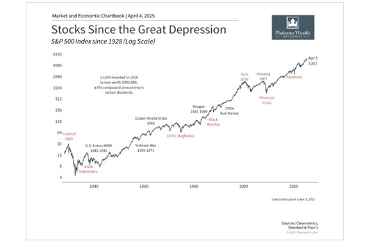 Although markets can be unsettling, history shows that keeping a long-term perspective is the best way to stay on track to achieve your financial goals. As investors, it is important to focus on what we can control. There is a lot of conflicting noise coming from all sources of media. Considering recent market moves and policy changes, the best approach is still to stay focused on the long run and stick to your personalized financial plan and goals. As always, we are here if you want to talk...